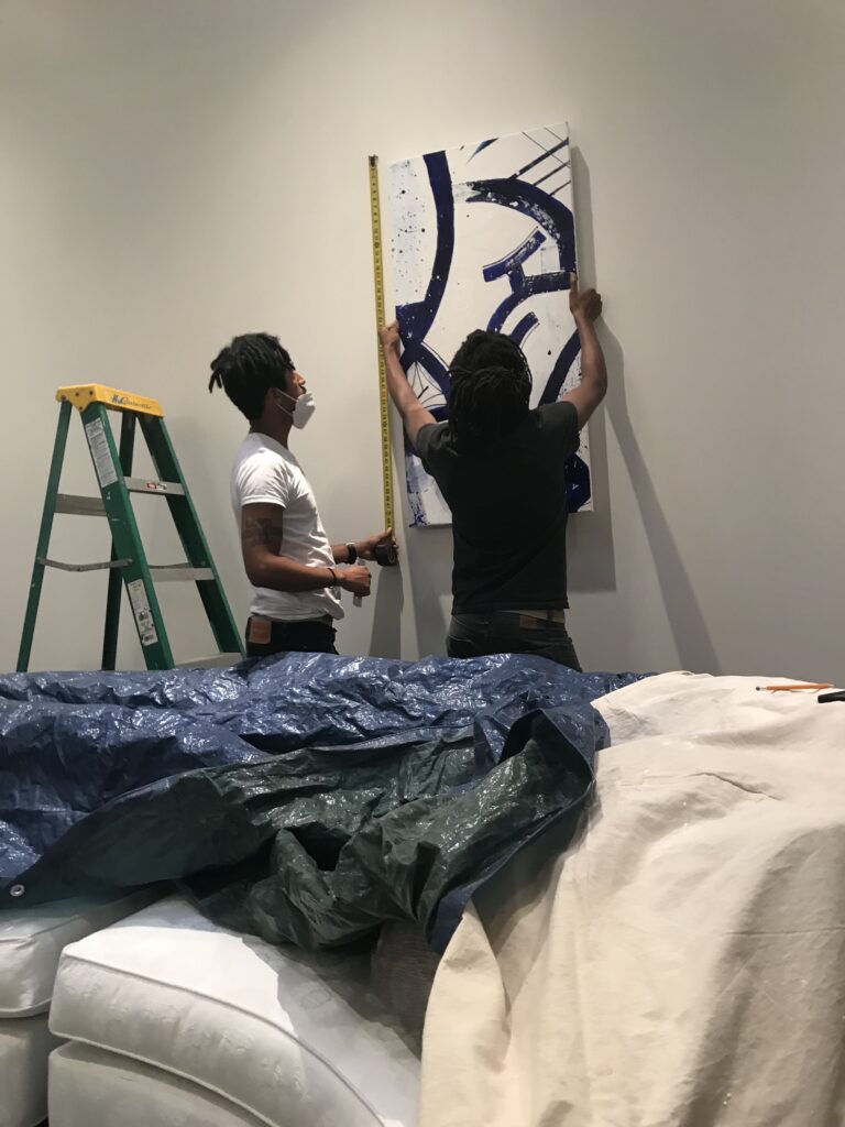 Thus, her interest was a large blue and white piece that would be placed on a designated wall in the home built for them by her husband. It was quite a momentous experience having it installed on her wall and explaining to her the meaning behind the lines. One can distinctly see a sound wave, bridging them together between realms within one world. While he may be gone in the physical, this piece is now a reminder of his legacy, love of art, love for her, and displayed in one of the sitting rooms in their home.